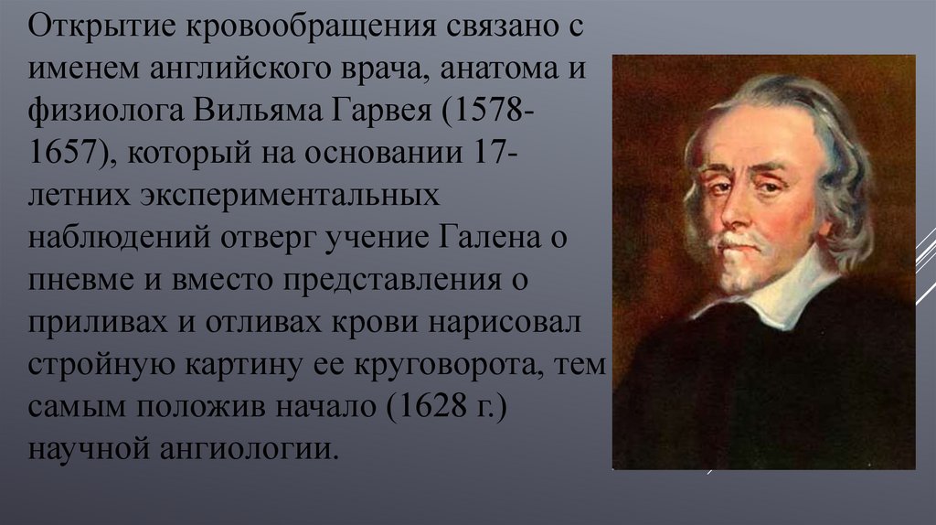 физиолога Вильяма Гарвея (15781657), который на основании 17летних экспериментальных