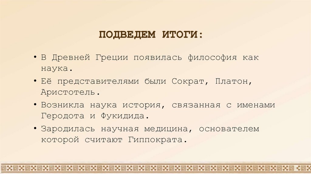 ПОДВЕДЕМ ИТОГИ:• В Древней Греции появилась философия как