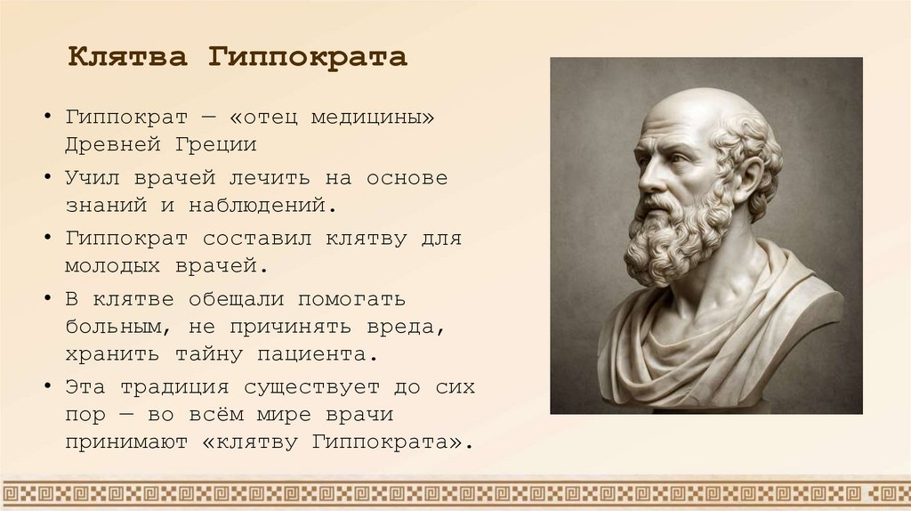 Клятва Гиппократа• Гиппократ — «отец медицины»