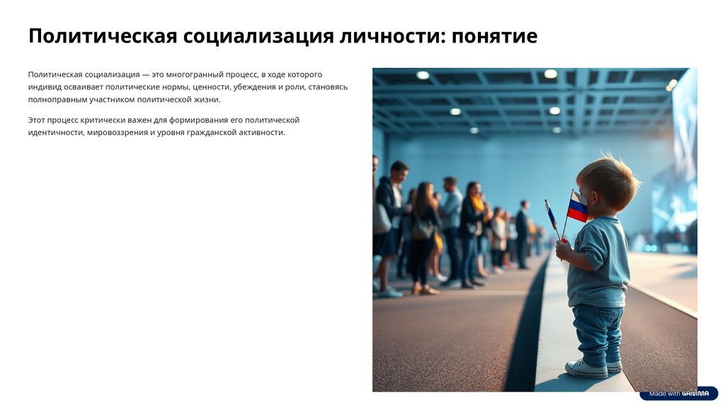 Политическая социализация личности: понятиеПолитическая социализация — это многогранный процесс, в ходе которого