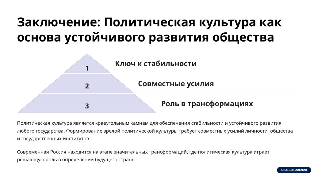 Заключение: Политическая культура какоснова устойчивого развития общества