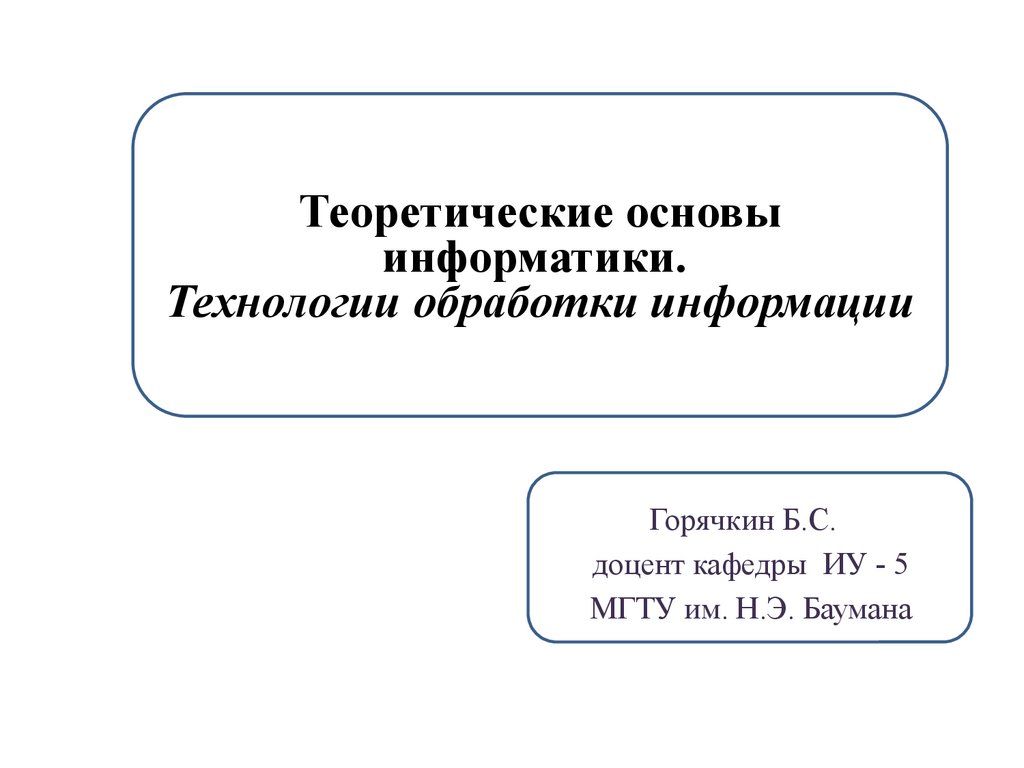 Горячкин Б.С.доцент кафедры ИУ - 5