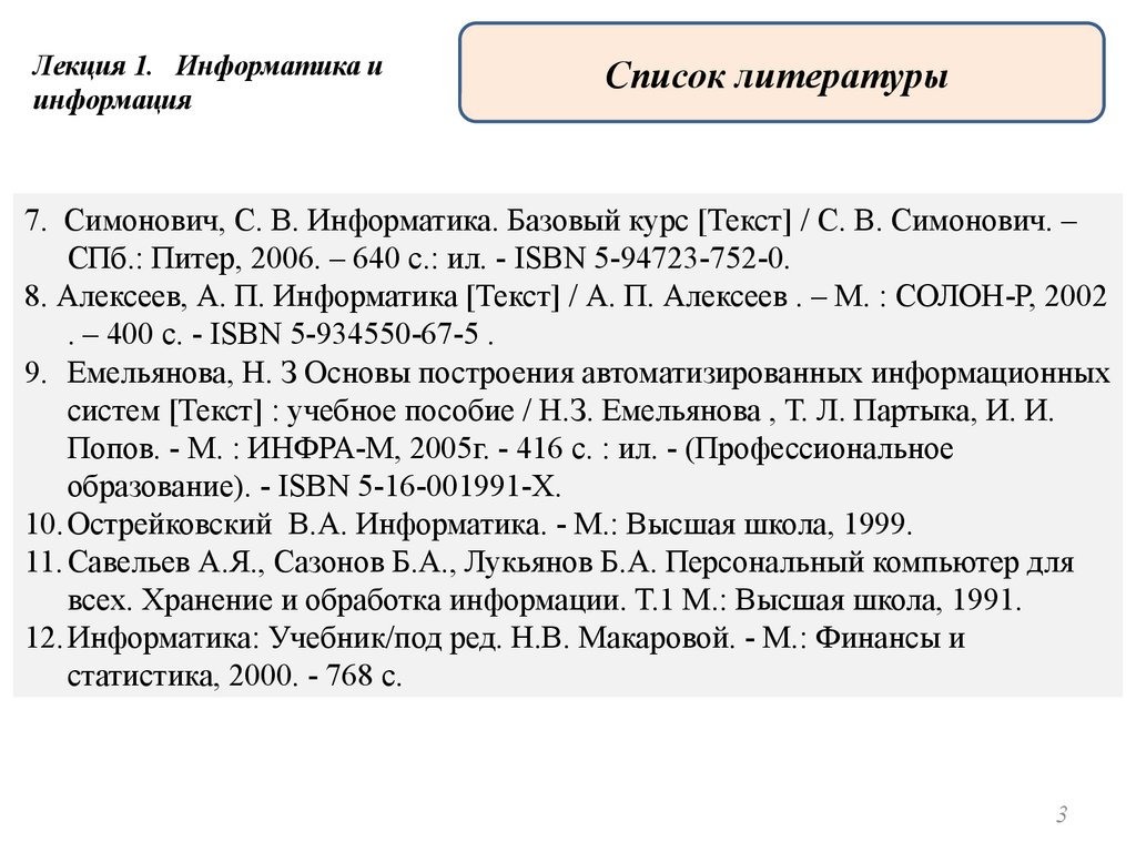 7. Симонович, С. В. Информатика. Базовый курс [Текст] / С. В. Симонович. –