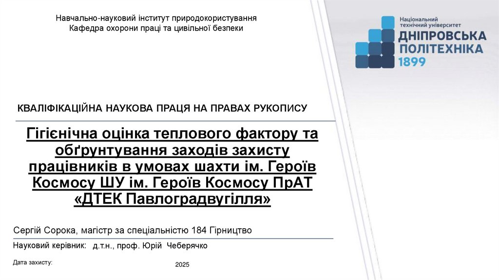 1. Гігієнічна оцінка теплового фактору та обґрунтування заходів захисту працівників в умовах шахти ім. Героїв Космосу ШУ ім.