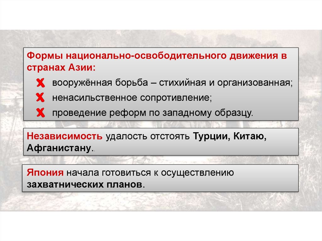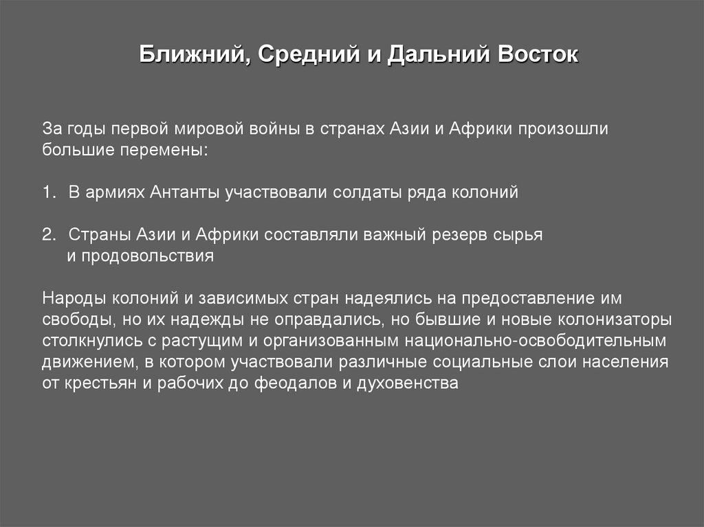 Ближний, Средний и Дальний ВостокЗа годы первой мировой войны в странах Азии и Африки произошли