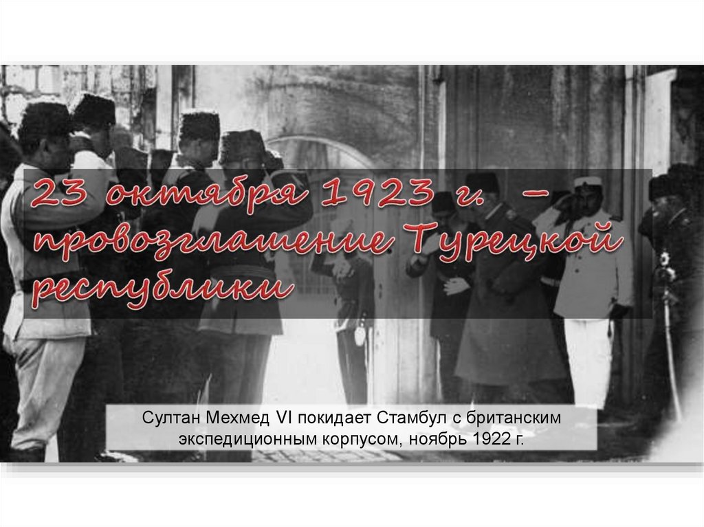 Султан Мехмед VI покидает Стамбул с британскимэкспедиционным корпусом, ноябрь 1922 г.