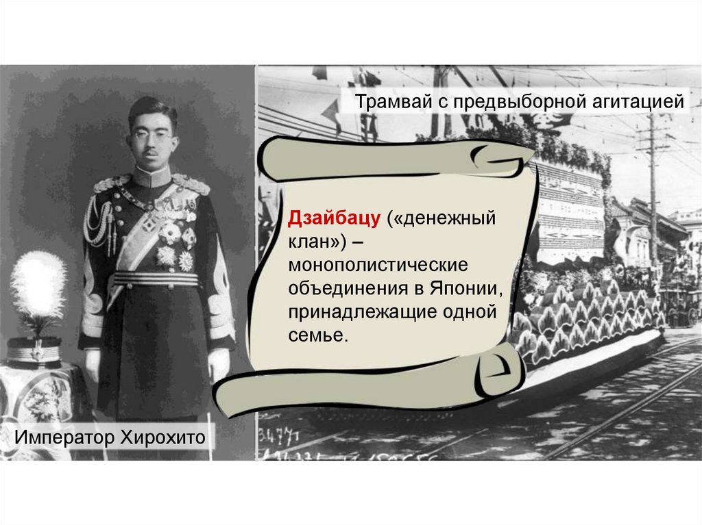 Трамвай с предвыборной агитациейДзайбацу («денежный