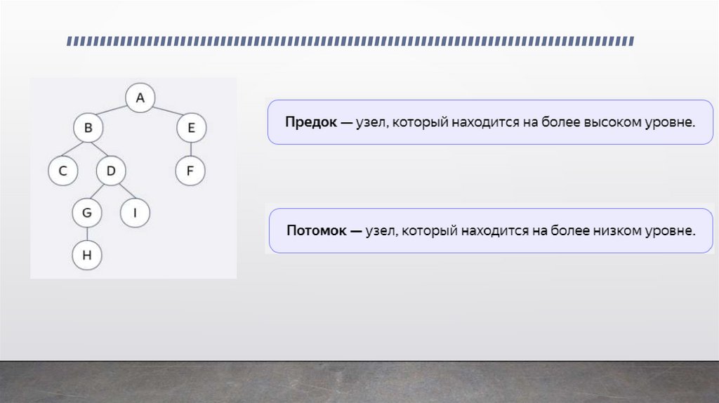 Дерево — граф, в котором вершинырасположены на разных уровнях,