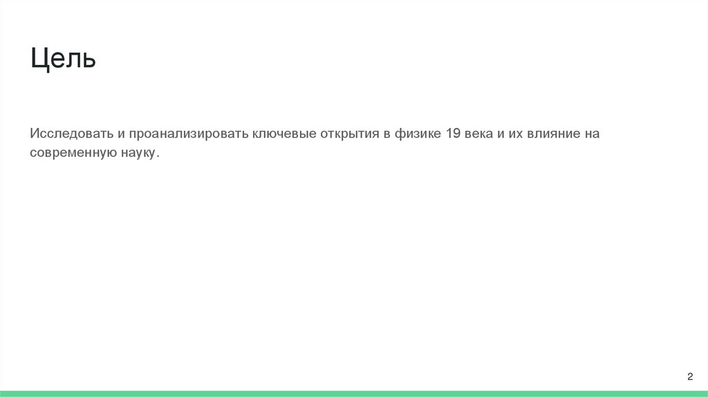 ЦельИсследовать и проанализировать ключевые открытия в физике 19 века и их влияние на