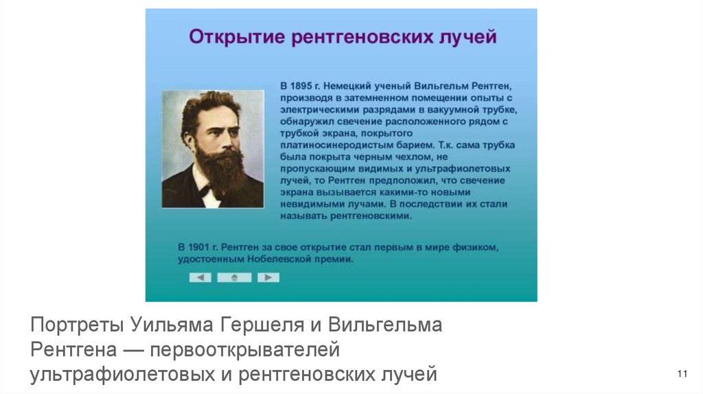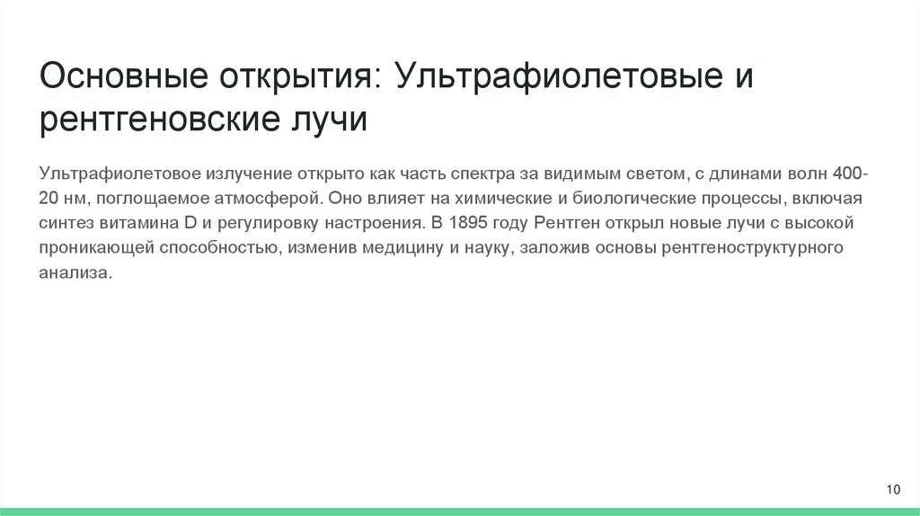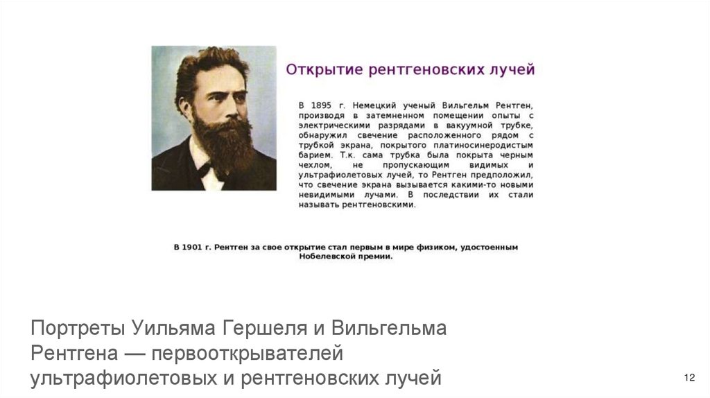 синтез витамина D и регулировку настроения. В 1895 году Рентген открыл новые лучи с высокой