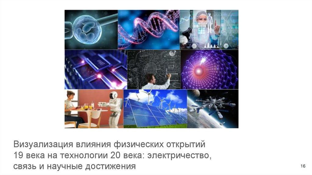 Визуализация влияния физических открытий19 века на технологии 20 века: электричество,