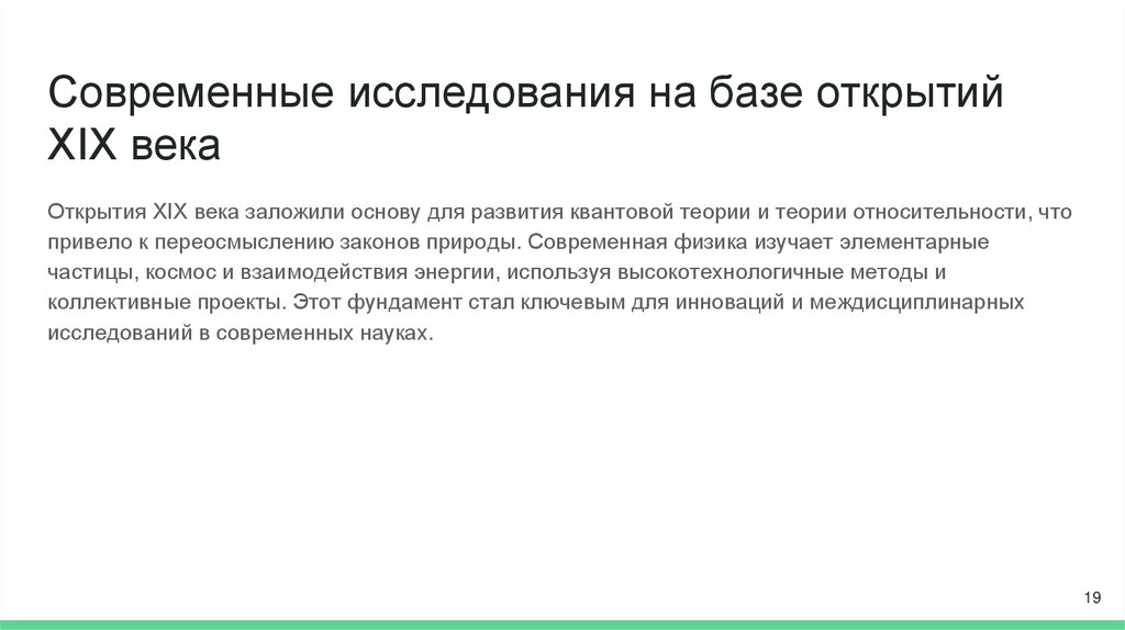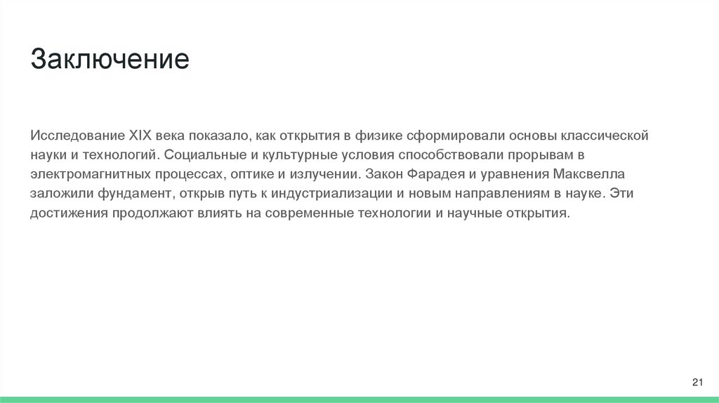 ЗаключениеИсследование XIX века показало, как открытия в физике сформировали основы классической