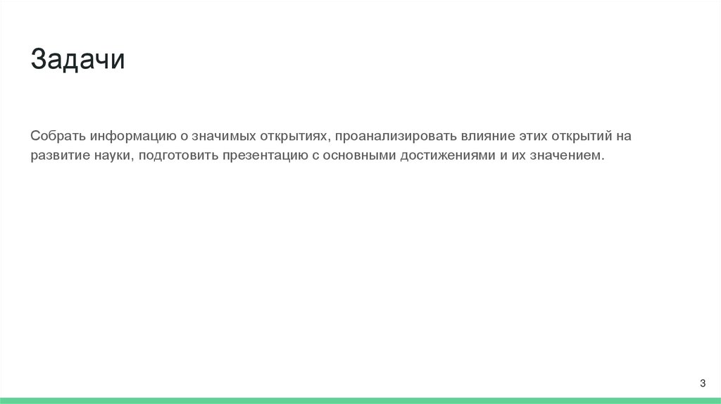 ЗадачиСобрать информацию о значимых открытиях, проанализировать влияние этих открытий на