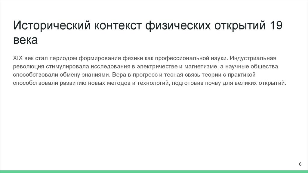 Исторический контекст физических открытий 19века