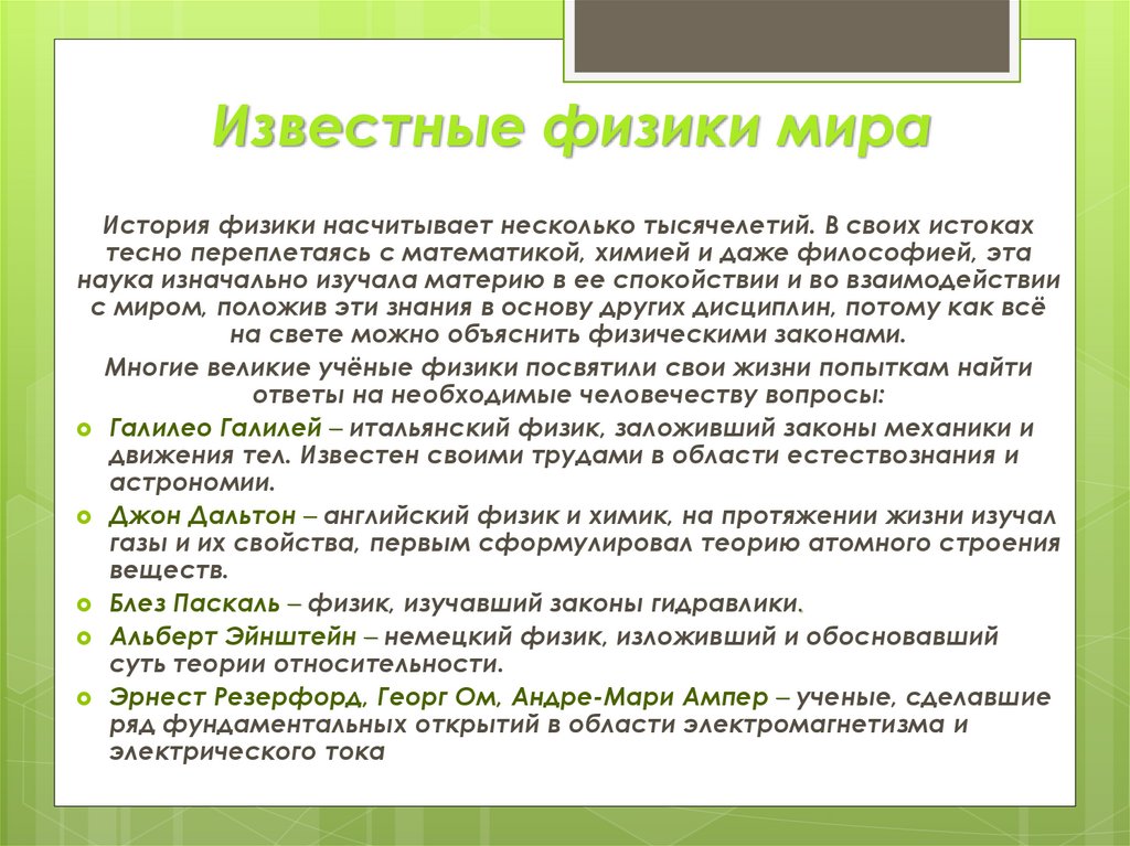 Известные физики мираИстория физики насчитывает несколько тысячелетий. В своих истоках