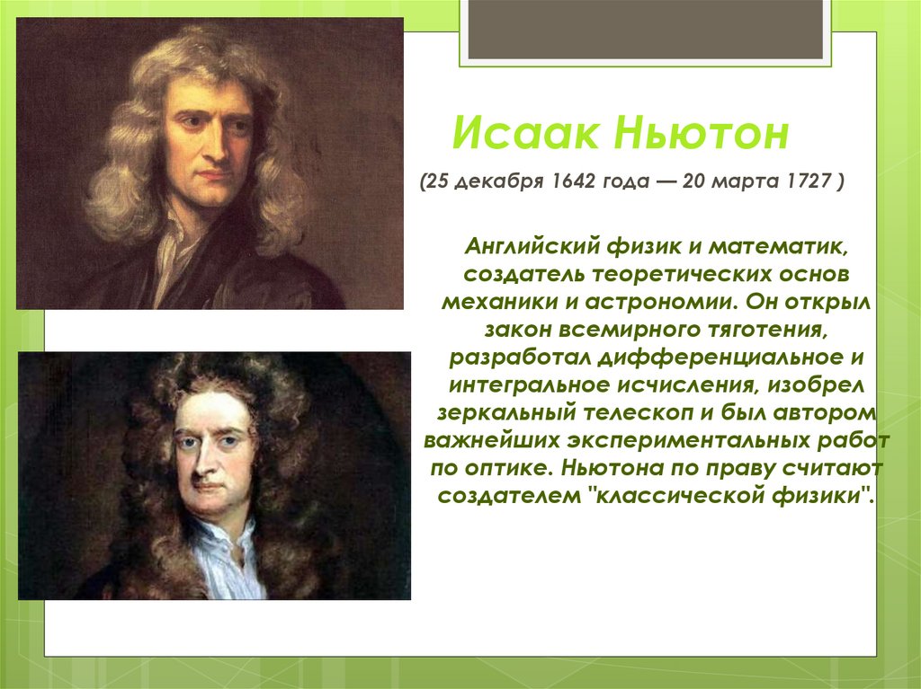 Исаак Ньютон(25 декабря 1642 года — 20 марта 1727 )