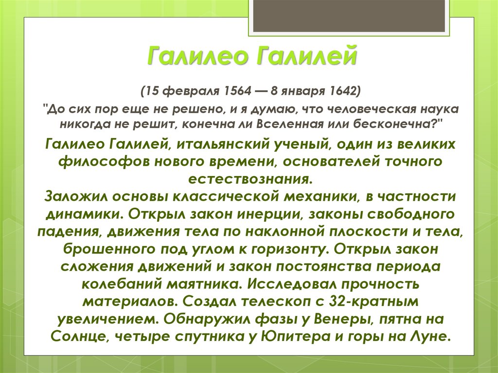 Галилео Галилей – итальянский физик, заложивший законы механики и