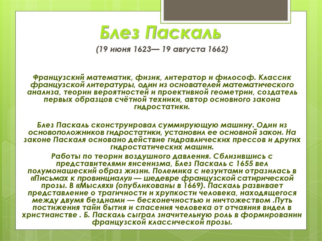 Блез Паскаль(19 июня 1623— 19 августа 1662)