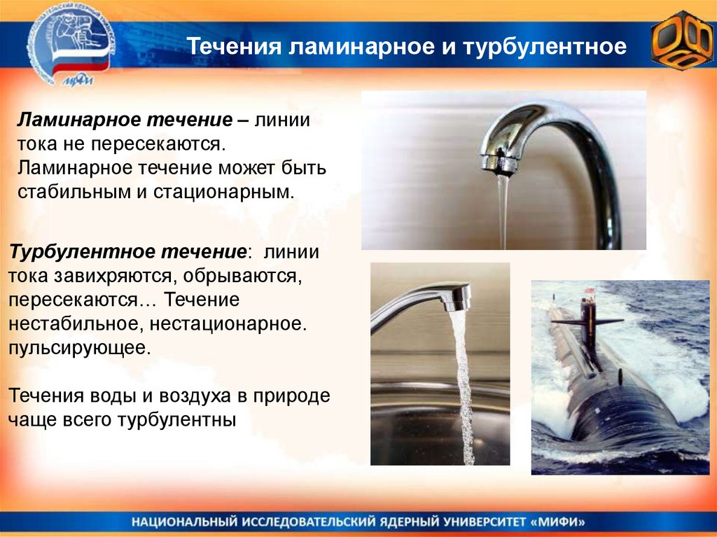 Течения ламинарное и турбулентноеЛаминарное течение – линии