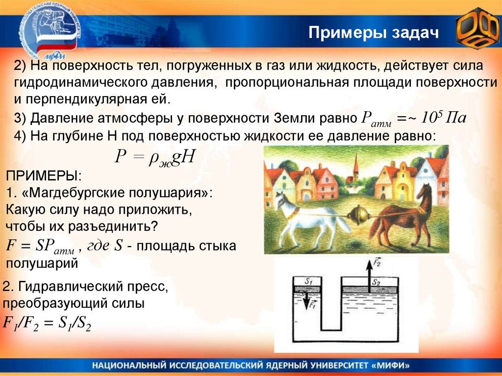 Примеры задач2) На поверхность тел, погруженных в газ или жидкость, действует сила