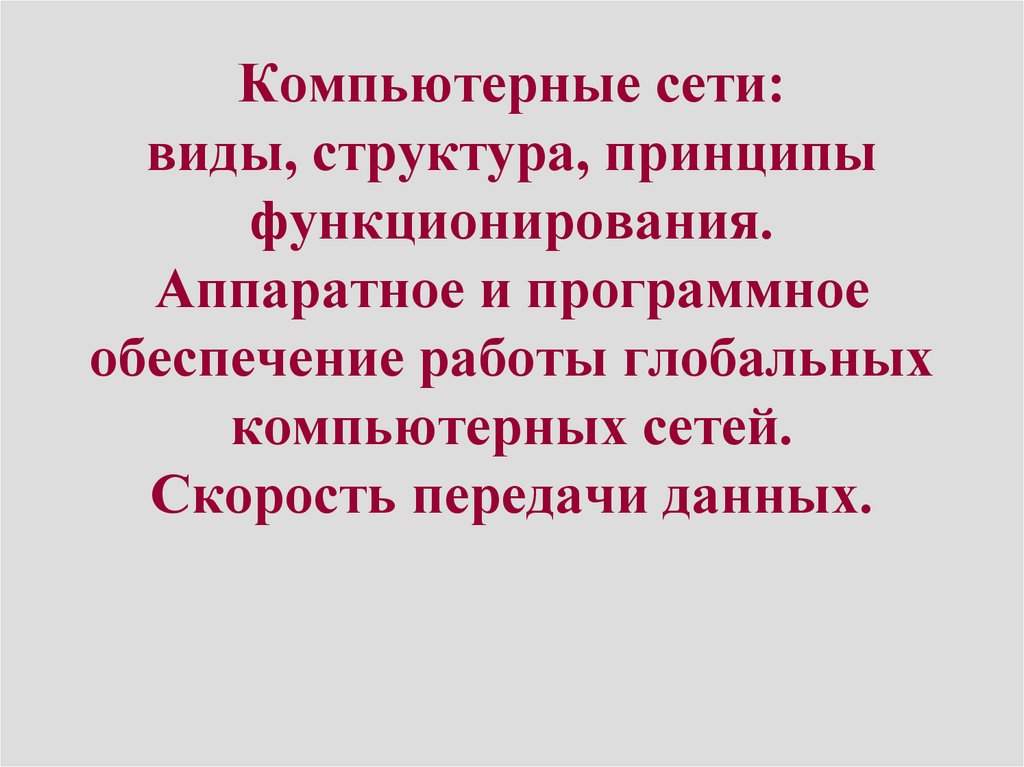 1. Компьютерные сети: виды, структура, принципы функционирования. Аппаратное и программное обеспечение работы глобальных