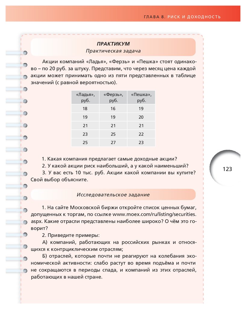 ГЛ А В А 8 . Р И С К И Д ОХОД Н ОС Т ЬАкция Б