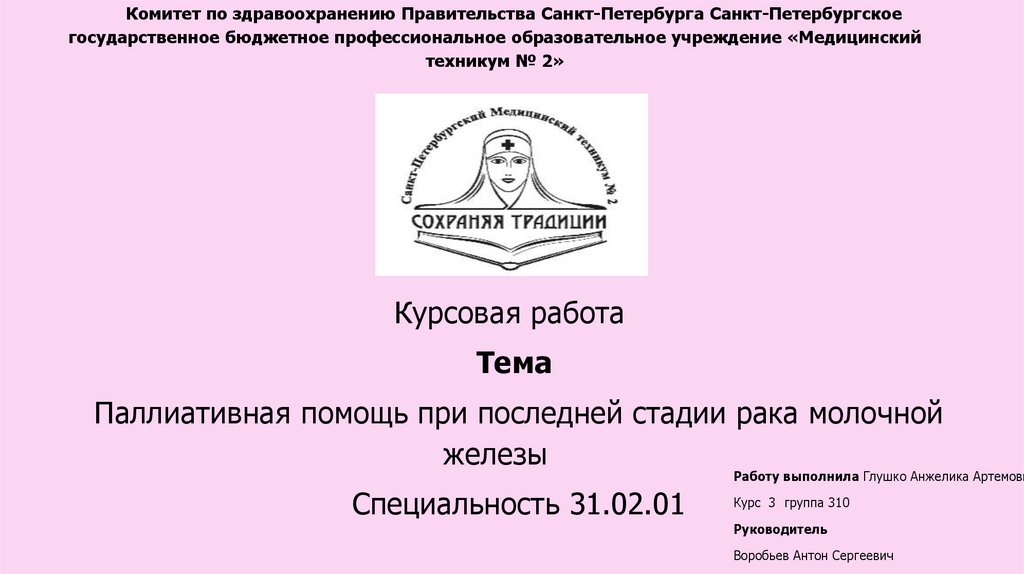 Комитет по здравоохранению Правительства Санкт-Петербурга Санкт-Петербургскоегосударственное бюджетное профессиональное образовательное учреждение «Медицинский