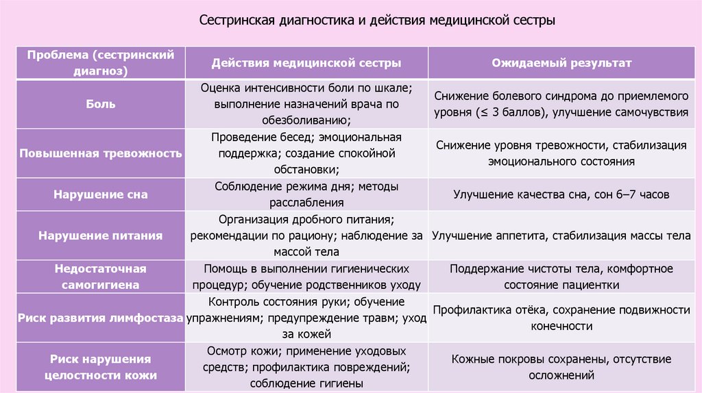 Сестринская диагностика и действия медицинской сестрыПроблема (сестринский