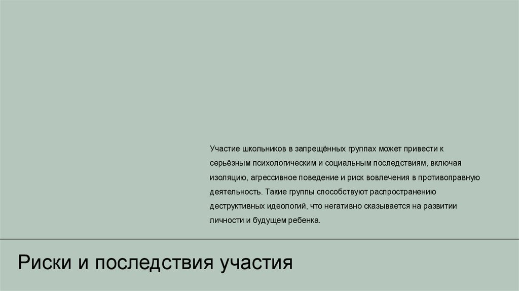Участие школьников в запрещённых группах может привести ксерьёзным психологическим и социальным последствиям, включая