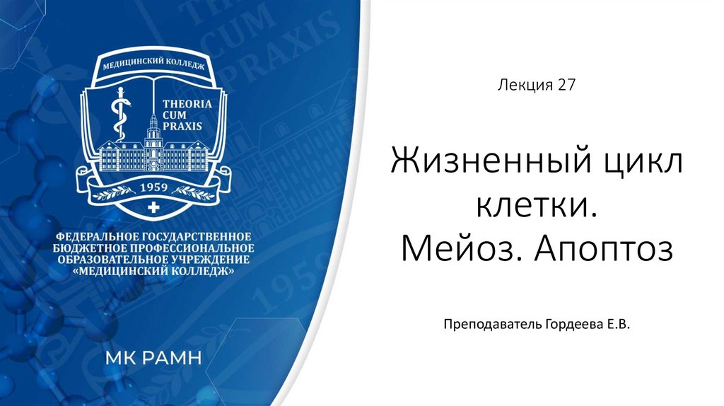 1. Лекция 27 Жизненный цикл клетки. Мейоз. Апоптоз