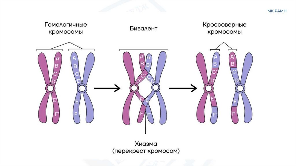 В клетке происходит конъюгация. Во время этого процессагомологичные хромосомы узнают друг друга и