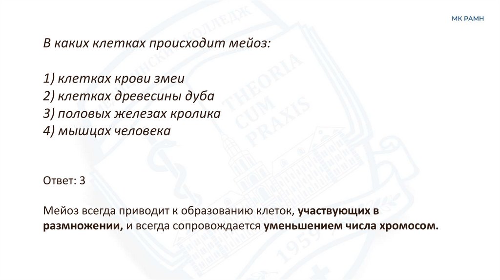 размножении, и всегда сопровождается уменьшением числа хромосом.