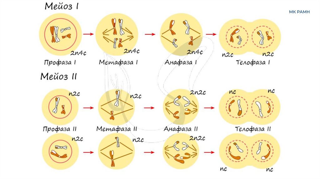 профазе мейоза I 2n 4c ( 8 хромосом, 16 молекул ДНК).3) В профазе мейоза II 1n 2c (число хромосом – гаплоидное,