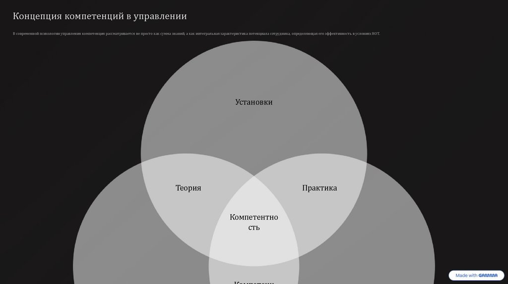 Концепция компетенций в управленииВ современной психологии управления компетенция рассматривается не просто как сумма знаний, а как интегральная характеристика потенциала сотрудника, определяющая его эффективность в условиях НОТ.