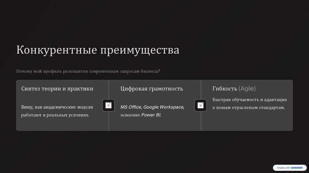 Конкурентные преимуществаПочему мой профиль релевантен современным запросам бизнеса?