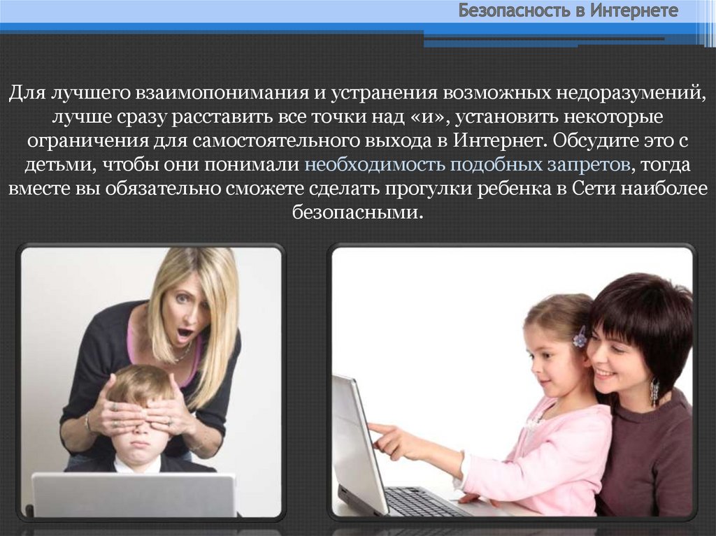 ограничения для самостоятельного выхода в Интернет. Обсудите это с