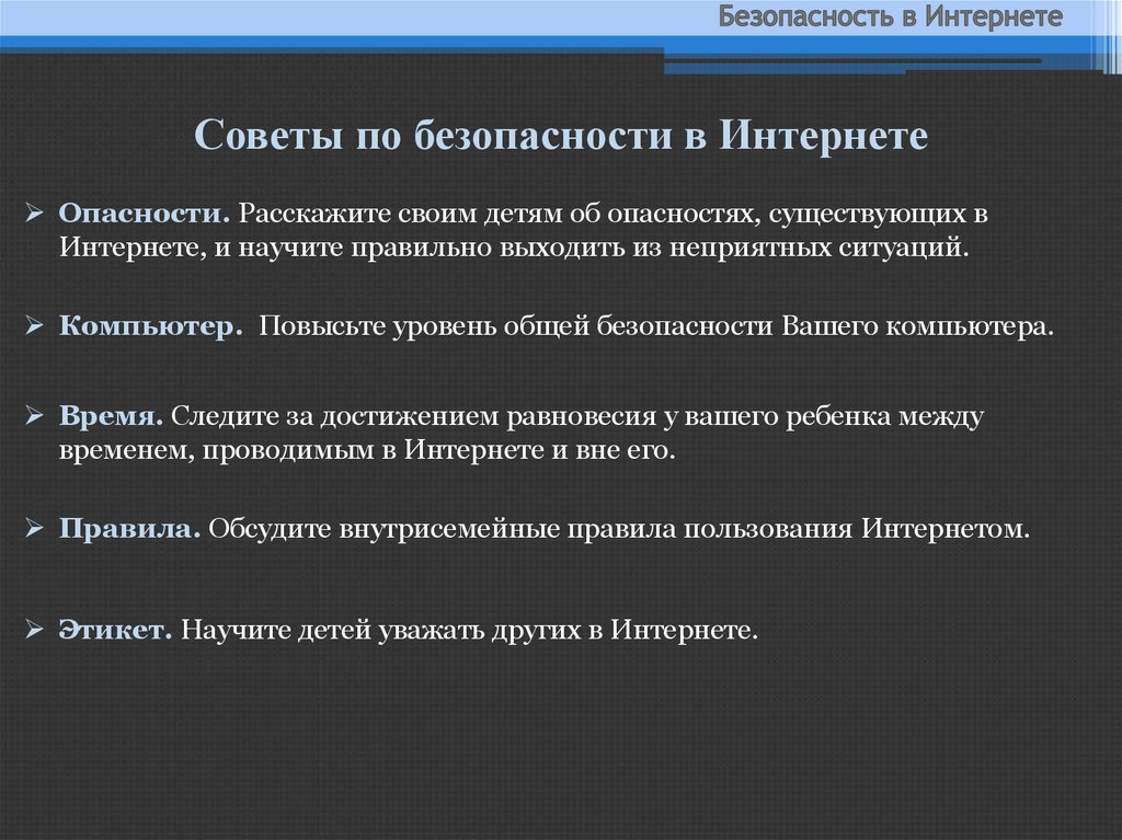 Советы по безопасности в ИнтернетеОпасности. Расскажите своим детям об опасностях, существующих в