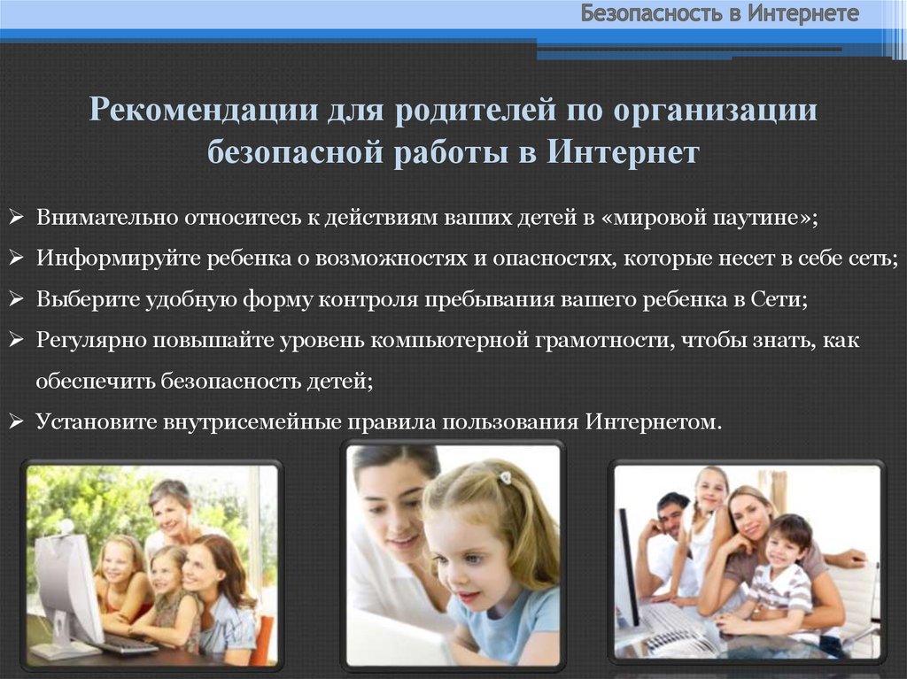 Рекомендации для родителей по организациибезопасной работы в Интернет