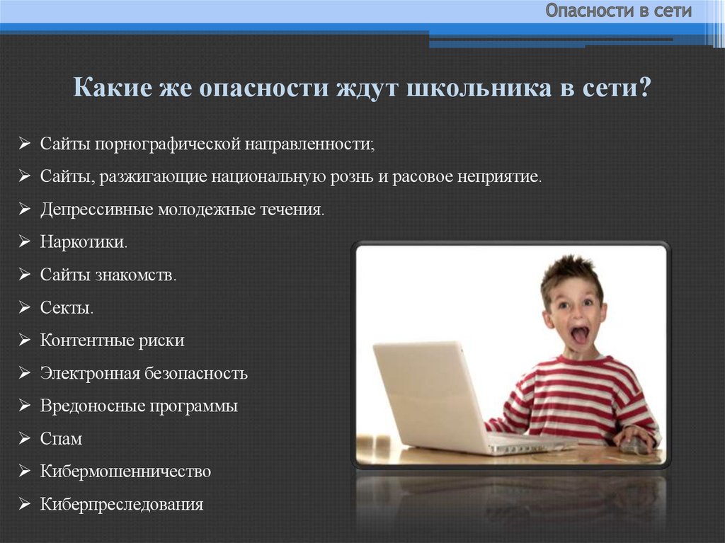 Какие же опасности ждут школьника в сети?Сайты порнографической направленности;