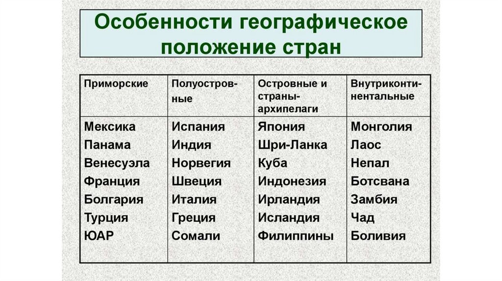 Классификация стран мира по критериям:• по территории;