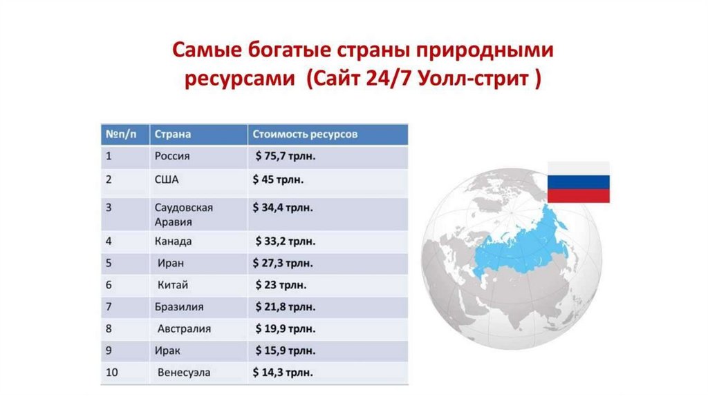 • по обеспеченности природными богатствами;