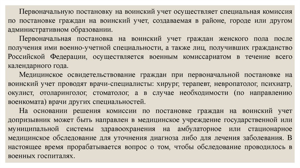 Медицинское освидетельствование граждан при первоначальной постановке на