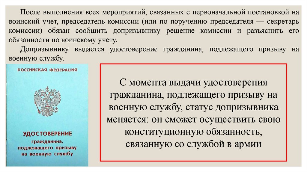 постановки воинский учет. В этот период каждый призывник должен развить в себе