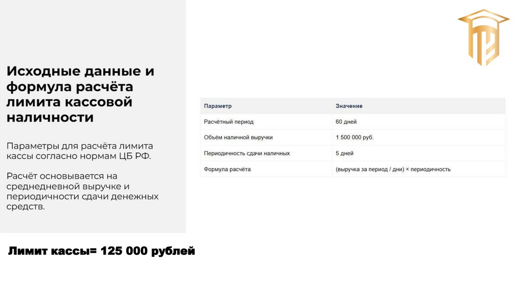 • выполнен расчет лимита кассовой наличности и оформлены распорядительные документы;