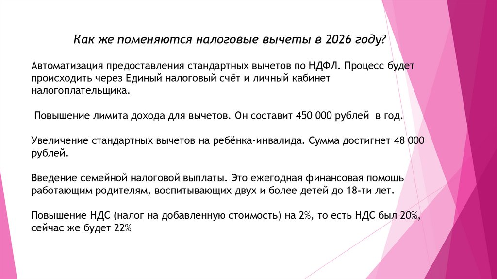 Как же поменяются налоговые вычеты в 2026 году?Автоматизация предоставления стандартных вычетов по НДФЛ. Процесс будет