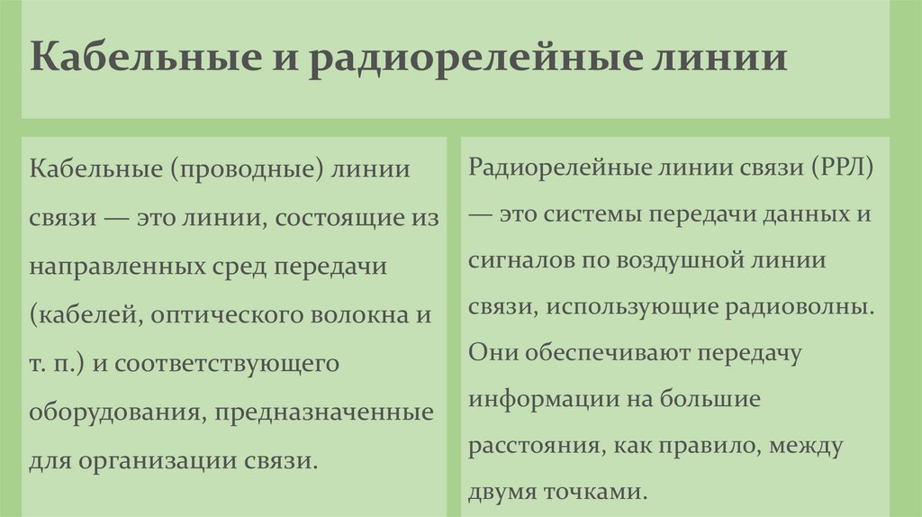 Кабельные и радиорелейные линииКабельные (проводные) линии
