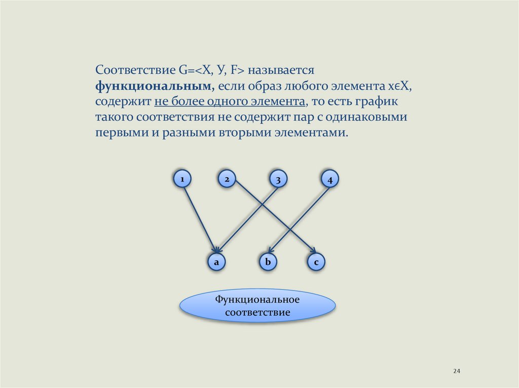 Соответствие G=<Х, У, F> называетсяфункциональным, если образ любого элемента хϵХ,