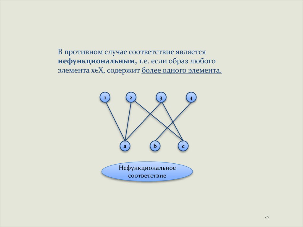В противном случае соответствие являетсянефункциональным, т.е. если образ любого