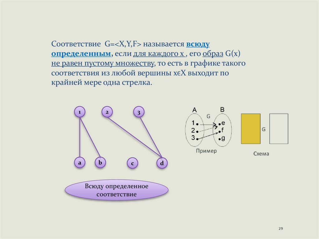 Соответствие G=<X,Y,F> называется всюдуопределенным, если для каждого х , его образ G(х)