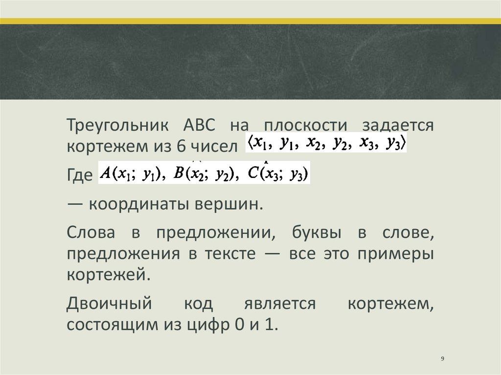 Треугольник АВС на плоскости задаетсякортежем из 6 чисел